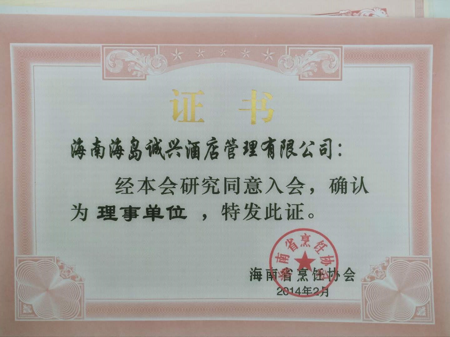 2014-海岛诚兴-海南烹协理事单位