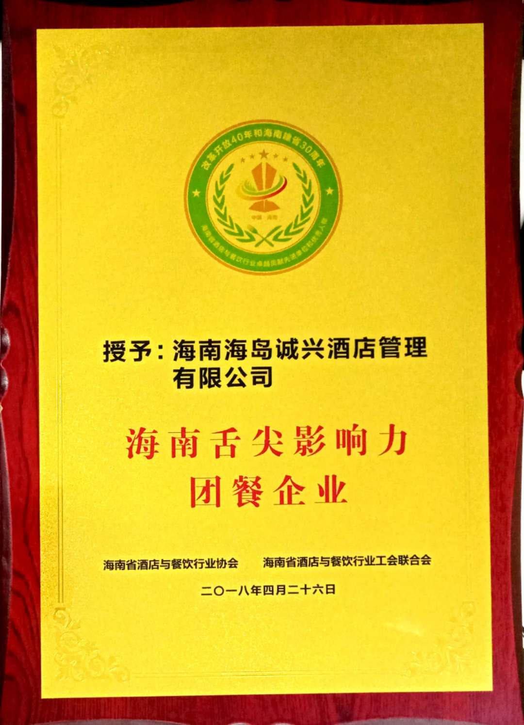 2018-海岛诚兴-海南舌尖影响力团餐企业